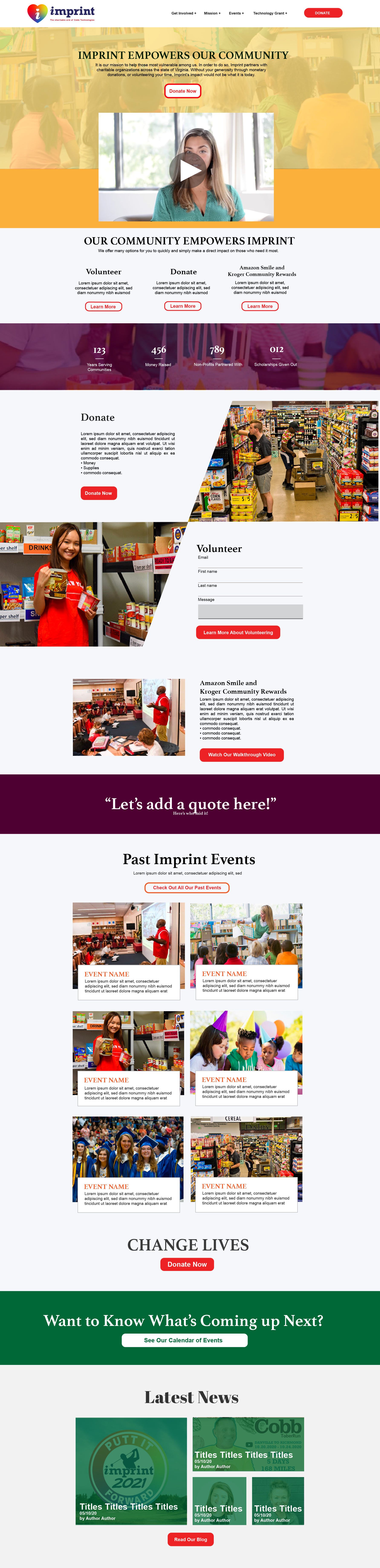 Redesign Imprint’s website so that it adequately describes its approach to philanthropy and reflects the scale of its work as well as its accomplishments. Doing so would prove to potential volunteers and donors that Imprint is a legitimate, effective nonprofit worthy of their time and resources.