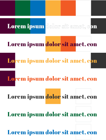 The colors throughout Imprint’s website were inspired by Imprint’s logo, but tweaked so as to adhere to a color contrast ratio of 4.5:1 for ease of reading. The palette incorporates bright, cheery colors associated with positivity and happiness.